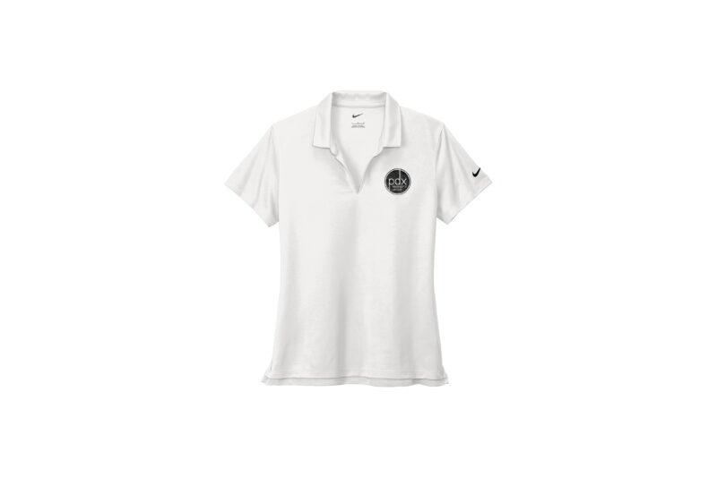 Women stay cool when things heat up. Nike has engineered this modern classic polo with Dri-FIT fabric which provides moisture management technology. This comfortable micro pique polo has an exceptionally soft hand. The design features a flat knit collar with open-hem sleeves. The contrast Swoosh design trademark is embroidered on the left sleeve, PDX Property Group logo is on the left chest. Made of 4.4-ounce, 100% polyester.